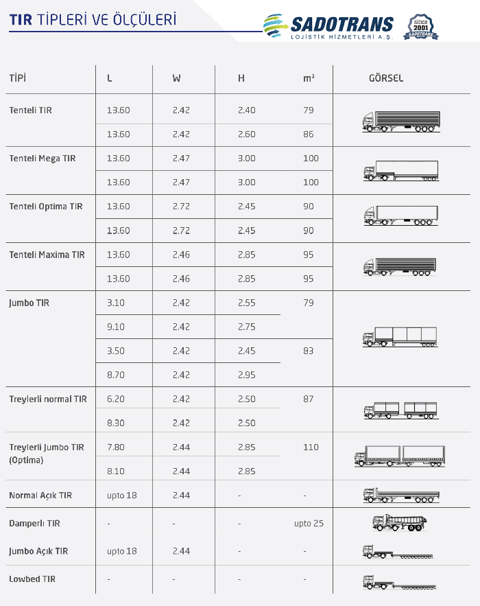 TIR TİPLERİ VE ÖLÇÜLERİ